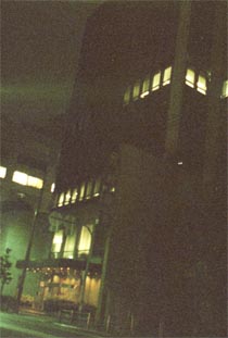 〔探索ポイント〕UFJ銀行、東京海上、東京三菱銀行、大阪市役所、おいおい損保、野村證券、日本生命今橋ビル 夜、雨上がりの御堂筋をカメラと三脚をかつぎチャリンコで疾走する二人の怪しげな男たち・・・。道行く人が振り返る。ある女性は「新聞社の人かしら?」。 工事現場の作業員さんたちは「おい、また来たデッ!」。三脚を設置するための目印にガムテープを濡れたアスファルトに貼っていく。歩行者の革靴やハイヒールの底にへばり着くのか、1時間後には消えてなくなるガムテープ・・・。 世間で一般的に「仕事が暇な月」は、ニッパチ(2月・8月)と言われます。そのニッパチの月末、2月28日(木曜日)の夜に淀屋橋界隈のいくつかの大企業を外からウッチングしてきました。 オフィスの中では何人のサラリーマンや公務員が深夜残業を強いられているのか・・・。それとも電気の消し忘れなのか?「こんなに遅うまで何しとんのやろ?」といぶしがる撮影班。印象的だったのが、UFJ銀行。御堂筋に面するところの灯りはそこそこだが、同じビルの裏手にまわると、ほとんどの窓から蛍光灯の灯りがコウコウともれている。 各大企業の経営者のみなさん! 従業員の健康にもっと配慮をしてくだされ。それこそ、労働基準監督署の見回りやったらアウトでっせ! ※今回のウォッチングは、午後8:00-9:00、9:00-10:00、10:00-11:00、12:00-の合計4回行いました。それぞれ写真の左上に撮影時間帯を記載しております。ご参考に。あえて絵解きはしておりませんが、ご参考に。 |